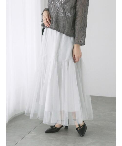 ラメの繊細な輝きが上品な華やかさを演出するスカート。斜めに施したティアード切替がアクセントをプラスし、裾のふんわりとしたシルエットで愛らしさを漂わせます。ウエストは脱ぎ着もしやすいゴム仕様になっていてスタイリングもノンストレス。合わせるトップスによって、カジュアルにもキレイめにと幅広いコーディネートが楽しめる1着です。※商品画像は、撮影環境やお客様のご利用のPC・スマートフォンのモニター環境などにより実物と色味に差異がある場合がございます。【その他採寸】F ウエスト:[ゴム仕様]60cm