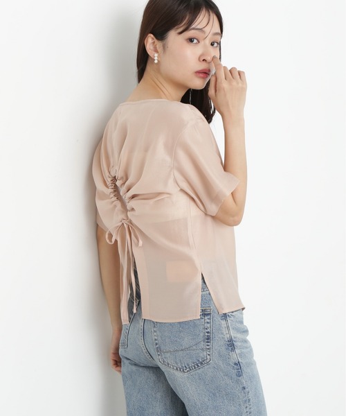 程よい背中開きデザインがヘルシーな肌見せを叶える1枚。前から見るとシンプルなTブラウスですが、後ろはデザインが効いているバックシャンのため、前後で違う表情を楽しめます。<素材>トレンドのシアー素材を使用。ほんのりワッシャー感があり風合いのある生地です。<詳細>仕様・開閉なし裏地・なし透け感・あり / 光沢・ややあり / 伸縮性・なし生地の厚さ・薄手●取り扱いについては、商品についている品質表示でご確認ください。●撮影はサンプル商品で行っている為、仕様とサイズが異なる場合がございます。●スタジオ及び屋外で撮影した着用画像は、光の当たり具合やご覧のモニターによって色味が違って見える場合があります。予めご了承ください。●生産時期により色・素材・サイズ感など多少異なる場合がございます。予めご了承ください。≪お買い物をよりお楽しみいただくために!≫・「商品のお気に入り登録」再入荷通知や、ラストの通知、セール通知も受け取ることができます。・「ブランドのお気に入り登録」新商品や再入荷をはじめ、タイムセールやクーポンなどいち早くブランドお得な情報を受け取ることができます。