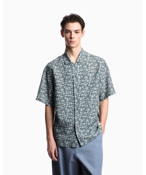 【エンポリオ アルマーニ】Peaceカプセルコレクション 半袖シャツ ビスコース混紡 オールオーバープリント