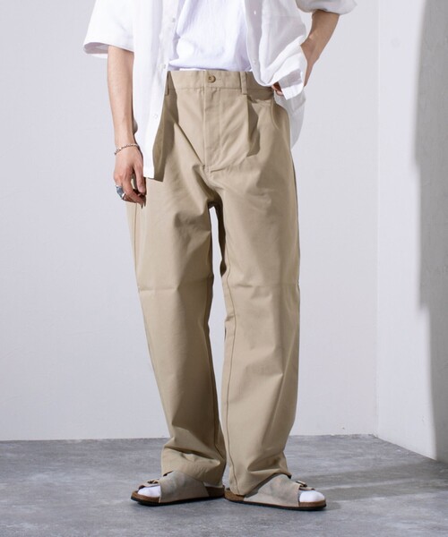 "No.6083M ・ワンタック入りのGEVACOのチノトラウザー ・ゆるやかなテーパードとゆとりのあるリラックスシルエットが特徴。 ・コシのあるしっかりした生地感で、通年使える1本 ・後ろポケットのロゴワッペンとワークブランドらしいハンマーループデザインがアクセントに 【GEVACO/ゲバコ】 1960年代にベルギーにて創業した老舗ワークウエアメーカー。 馬がオーバーオールを着た可愛いブランドアイコンと、馬に引っ張られても破けないワークウェアを製造するメーカーとして有名になりました。 創業当初はその丈夫さを買われ、ベルギー軍用の軍服として採用された実績があります。 本国では1990年代にブランドは消滅しました。 2021年、当時のブランドとの繋がりはありませんが、日本にて過去のデザイン・ディティールを参照し、現代風にアレンジした新たな“GEVACO""としてスタートしました。(商願2020-44488) ※お取扱い上のご注意 アテンションタグを必ずご確認の上、着用又はお取り扱いください。 ※店頭及び屋外での撮影画像は、光の当たり具合で色味が違って見える場合があります。 ※商品画像に関しては出来る限り忠実に表示出来るよう努めておりますが、お客様がご利用のモニターの設定及び特性により、実際の商品と比較し色味に若干の誤差が生じる場合があります。 ※画像の商品はサンプルとなりますので実際の商品と仕様、加工、サイズが若干異なる場合がございます。" ◇商品のお気に入り登録◇ 【お気に入りに登録】を是非ご活用ください。 再入荷の通知や、ラスト1点の通知、セールの通知がいち早く届きます。 ◇ブランドのお気に入り登録◇ 新商品や再入荷など、いち早くブランドのお得情報が届きます。