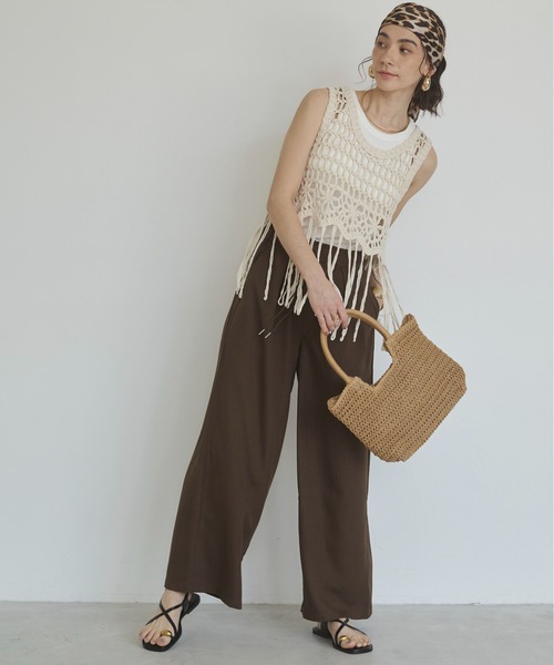 ON/OFF使える、大人カジュアルなイージーパンツが新登場! さらっと涼やかで肌離れが良いので季節を選ばない履き心地。 ワイドシルエットながら落ち感があるのでボリュームが出すぎず、脚のラインは拾わないデザインが嬉しいアイテムです! ●シルエット・デティール ・落ち感のあるリネンライク素材でさらっとした肌触り ・すとんとストレートに落ちるワイドシルエットは、脚のラインを拾わず真っすぐ見せてくれます。 ・ウエストゴムでストレスフリーな穿き心地です。 ・金具付のウエストリボンもアクセント。 ・両サイドにポケットが付いている使い勝手が良いデザインです。 ・シワになりにくく、ドレープ感がある素材が大人の魅力を引き立ててくれます。 ・色違いで持っていても便利な、大人気アイテムです◎ ・こなれた雰囲気漂う大人のリラックススタイルを演出してくれます。 ・デイリースタイルはもちろん、キレイめスタイルにも。 ・同生地のジャケット【AG25SM05-L0004 ハーフスリーブジャケット】とセットでの着用もおすすめです。 ●同素材シリーズ AG25SM05-L0004 ハーフスリーブジャケット AG25SM05-L0006 ワイドキャミサロペット AG25SM05-L0007 キャミワンピース ●生地感 落ち感があり、さらりとしている素材です。 ----------------------------------- 透け感:なし 厚さ:普通 伸縮性:なし 裏地:なし ポケット:あり 光沢感:なし ----------------------------------- ●コーディネート カジュアル感と品の良さを両立したパンツは、プリントTシャツやシアーカットソーから、きれいめなブラウスまで好相性。 今シーズン欠かせないクロップド丈のトップスを合わせたトレンドスタイルもおすすめ。 軽快にスニーカーはもちろん、エッジを効かせたボリュームシューズや盛夏には華奢なサンダルなど、足元のお洒落も幅広く楽しめます。 さまざまなシーンで活躍間違いなしの実力派サマーパンツを、春夏の新定番にぜひ。 ●カラーバリエーション 黒 ブラウン エクリュ 【ANGIE VINTAGE ZOZOTOWN お買い物ガイド】 【商品のお気に入り登録】 再入荷通知や、ラスト1点の通知、セール通知を受け取ることができます! 【ブランドのお気に入り登録】 新商品や再入荷、クーポンやタイムセールのお知らせ等、お得な情報を受け取ることができます! 【最短で翌日お届け】 商品をカートに入れた後、注文内容の確認ページで「即日配送」を選択していただければ、最短でご注文した翌日にお届け致します。 ※ご注文いただいた予約商品のお届け時期は、注文履歴ページよりご確認いただけます。 ※他のキャンペーンにより、期間中に価格が変動する場合があります。 ※セールは予告なく終了させていただく場合もあります。 ※モニター環境により、画像の色味と実物の色味が多少異なる場合がございます