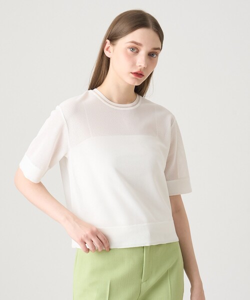 【Spring & Summer Collection 2025】 柔らかいラッセルメッシュ素材にコットンアクリルのニットリブを組み合わせた素材。 形はベーシックながら、トレンドのメッシュ素材で抜け感のあるプルオーバーです。 襟、袖口、裾はニットリブを切り替えた異素材使いがポイント。 短めの着丈なのでウエストをアウトして、バランスよく着て頂けます。 清涼感があり暑さが厳しい時期まで重宝する1枚です。 【付属】なし 【裏地】なし 【透け感】あり 【開き・留め仕様】なし 【伸縮性】あり 【ケア方法】手洗い可 【着用感・生地の厚さ】柔らかいラッセルメッシュ素材 model:173cm 着用サイズ:38 【ANAYIサイズ表】 34サイズ:5号 XSサイズ相当 36サイズ:7号 Sサイズ相当 38サイズ:9号 Mサイズ相当 ・「商品のお気に入り登録」や「ブランドのお気に入り登録」で新商品や再入荷通知、セール通知などのお得な情報を受け取ることができます。 ・照明の関係により、実際よりも色味が違って見える場合がございます。 またパソコン・スマートフォンなどの環境により、製品と画像のカラーが異なる場合もございます。予めご了承ください。