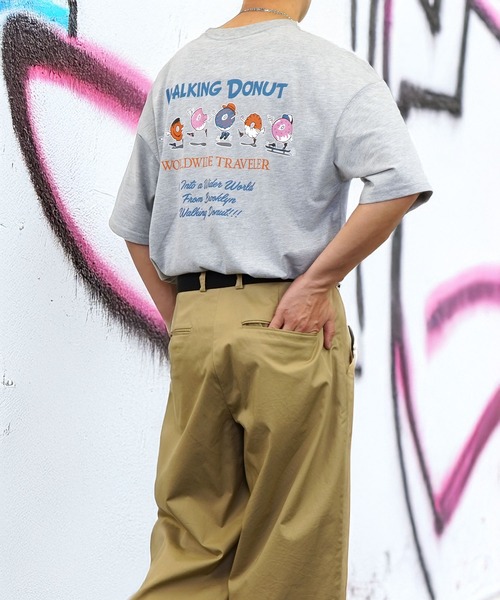 WALKING DONUT(ウォーキングドーナツ) ワイドシルエット半袖Tシャツ ・UVカット 「公的検査機関で検査済」 ・COOL&DRY(吸水速乾) 「公的検査機関で検査済」 【ブランド説明】 Walking Donut(ウォーキングドーナツ) ニューヨーク・ブルックリンの人気ドーナツ店から逃げ出したドーナツ達。 今日もどこかのストリートを自由気ままに歩いている。 ■商品紹介 オリジナルキャラ、WALKING DONUT(ウォーキング ドーナッツ)のワイドシルエット半袖Tシャツです。 オーバーサイズでポップなレトロ感あるプリントデザイン! 幅広いシーズンで活躍が期待できる着回し抜群のアイテムです☆ 【ポイント】 ・「デザイン」 プリントロゴ& バック発砲プリント ・ワイドシルエット ■素材 ポリエステル65%綿35% ----------------------------------------- ・生地の厚さ:厚い〇〇●〇〇薄い ・伸縮性:縦ややあり・横あり ・ホワイト透け感:ややあり ・裏地:なし ・光沢:なし ----------------------------------------- ■シルエット ゆったりとしたワイドシルエットは、ユニセックスなサイズ感で友達同士やカップルでのリンクコーデにもおすすめ! ■コーディネート メンズ、レディース問わず着用できるユニセックスデザインです。 旬なデニム、ジンズ、カーゴパンツ、パラシュートパンツ、定番にスキニーパンツ、レディースでは、デニムスカート、ワイドデニム、フレアパンツなど様々なスタイルに合わせやすいTシャツです。 季節に合わせ、ジップパーカー、カーディガン、合わせてトレンド感アップ。 ファッション小物では、バケットハット、キャップ、サングラス、リングなどの小物とも相性抜群。 普段使いはもちろんですが、おうち時間(ルームウェア可)でストレスなく快適に過ごしたり、お友達とペアで着たり、ユニセックス使用にも利用可能なアイテムです。 ■カラー ホワイト・ブラック・サックスブルー・ブラウン・杢グレー・グリーン・ミント ※商品のお色について※ ・ご利用頂いておりますパソコンのモニターや状況によりまして、実際のお色と異なって見える場合が御座います。 ・加工の関係上多少の誤差が生じる場合がございます。 【お買いものをお楽しみいただく為の方法】 ★商品のお気に入り登録★ ・完売カラーの再入荷通知や、ラスト1点の通知、セールの通知も受け取ることができます。 ★ブランドのお気に入り登録★ ・新商品や再入荷など、いち早くブランドのお得な情報を受け取ることができます! ※他のキャンペーンにより、期間中に価格が変動する場合があります。 ※セールは予告なく終了させていただく場合もあります。