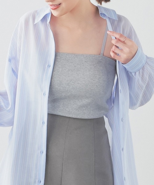 楽ちんなのにキレイ見え【デザイン】クッション性のあるソフトカップ付きのシンプルなデザイン。すっきりしたシルエットと縦目のラインで、細見え効果も◎ベーシックカラーからアクセントまで揃えたカラーバリエーション。【素材・機能】ストレッチの利いた綿混テレコ素材とノンワイヤーのカップで、フィット感がありながらストレスフリーな着心地。表地は紫外線対策ができる『UVカット』、カップ部分は素早く汗を吸収して乾きやすい『吸水速乾』の機能付き。肩ひもはアジャスター付きで、お好みの長さに調節可能。取り外しもできて、クロスデザインやストラップレスなどマルチにアレンジが楽しめる♪【スタイル】レイヤードのインナーとして大活躍。シアーシャツやメッシュ編みニットなど、透け感のあるアイテムと合わせると今年らしいスタイルに♪※胸元・後背部分ゴム品番:654-13-9330