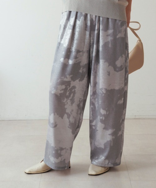 ■POINT 水彩タッチなシャイニー柄がインパクトのあるリラクシーなパンツ。広がりすぎずにすとんと落ちるセミワイドシルエット。お手持ちのシャツやニットに合わせるだけで、旬コーデにアップデートする春一押しのアイテムです。ウエストのフリルがワンポイント。ウエストオールゴムでストレスフリー。紐付きでウエスト調整可能です。 ■FABRIC ポリエステル100%でしわになりにくく、落ちつきのあるシャイニー感で、抵抗なく取り入れて頂けます。 ………………… 透け感:なし 裏地: なし ………………… ★商品のお気に入り登録 登録すると、完売しても再入荷時に通知を受け取ることができます。 ほかにもお得な特典があるかもしれません♪ ★ブランドのお気に入り登録 新商品や再入荷などの情報を受け取ることができますので、是非ご登録ください♪