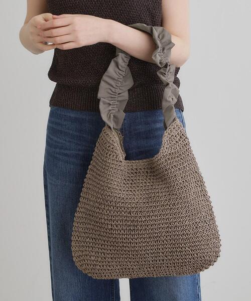 【デザイン】 ナイロン素材のギャザーフリルハンドルに、ペーパー素材を編み立てたワンショルダー。 たっぷり容量のサイズに肩掛けしやすいハンドルで持ちやすいです。 細いペーパー編みが上品で、大人フェミニンな夏バッグ。 【仕様】 ・ポケット数:内側×3 ※照明の関係により、実際よりも色味が違って見える場合があります。また、パソコン・スマートフォンなどの環境により、若干製品と画像のカラーが異なる場合もございます。 【25SS】 店舗へのお問い合わせ商品番号:769-02510 ●製品寸法: 00:高さ31cm 幅(上部)33.5cm 幅(下部)34cm マチ7cm 持ち手上がり30cm 備考:重量:約225g(サンプルサイズ)