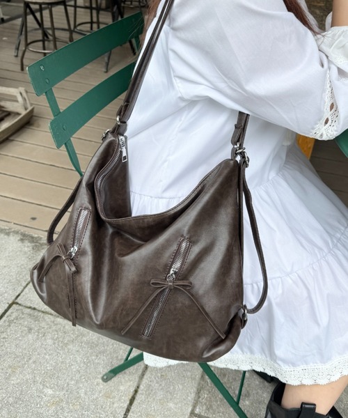 たっぷりサイズで荷物が多くても安心♡リボンが可愛いPUレザーバッグ▼POINT・トレンドのリボンがアクセントのショルダーバッグ・ヴィンテージライクな色味でコーデにこなれ感をプラス・500mlペットボトルやA4サイズも入り、荷物が多い時でも安心・マチ付きの立体感あるデザインで、ファスナー開閉で安心して使える・外ポケットは鍵やリップなどの小物が収納可能・ファスナー付の内ポケットも嬉しいポイント・斜め掛け/リュックとしても使えるのでスタイリングに合わせてマルチWAYで楽しめる・通勤や通学はもちろん、コンサートなど荷物が嵩むイベントにもオススメ◎※ご覧のモニター・撮影環境により実際の商品と多少色味が異なって見える場合がございます。予めご了承をお願いいたします。 【Loueme...♡】”Loulou”(可愛い子) + "bohéme"(自由奔放) 造語から”Louéme(ルエム)”が誕生しました。 自由気ままに、おしゃれを楽しみ 自分のため、大切な誰かのために いつだってかわいくいたい女の子のためのブランドです。~お買い物をよりお楽しみいただく為に~▼”商品”のお気に入り登録♡ハートをクリック!完売カラーの再入荷や、ラスト1点の通知、セールの際の通知を受ける事ができます。▼”ブランド”のお気に入り登録♡新商品や再入荷など、いち早くブランドのお得な情報を受け取ることができます。