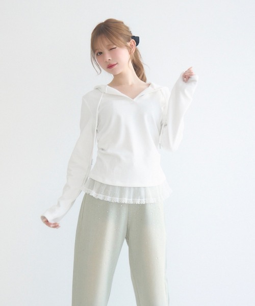 TITTY&CO.2025SS collection[detail]シンプルなパーカーに、裾のレーストリムが女性らしいアクセントをプラス♡フード付きデザインで、カジュアルながらもフェミニンな雰囲気に◎柔らかい素材感で、春先にぴったりの軽やかな着心地♪--------------------------裏地:なし透け感:なし伸縮性:なし生地の厚さ:普通-------------------------- [styling]スキニーパンツとスニーカーで、カジュアル&フェミニンなデイリースタイルに♪フレアスカートと合わせて、ガーリーなカジュアルコーデに◎ショートパンツ&ロングブーツで、韓国風のトレンドスタイルを楽しんで♡【商品のお気に入り登録】完売カラーの再入荷や、セール通知などお得な情報を受け取ることができます。ぜひご登録下さい♪【ブランドのお気に入り登録】新作入荷や再入荷、セールやクーポンイベントなど注目のブランド情報を受け取ることができます。ぜひご登録ください!!