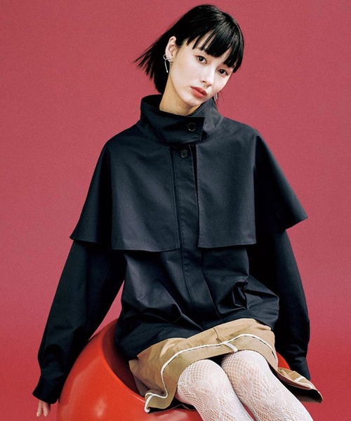 アイキャッチはケープ!ミニマルな進化系アウター 顔まわりがすっきりと見える立ち衿、大きめのケープデザインなど、クラシカルなディテールの比翼ジャケットに、ほんのり甘さを添えてブラッシュアップ。 前後の身ごろのすそと袖口にタックを入れてふんわりと、大人っぽくてかわいいシルエットに仕上げています。 腰にかかるほどよい丈感でボトムスを選ばず、着こなしを限定しない上品なネイビーも新鮮。 気分も新たな春の装いに、パッとはおって、どこへでも出かけたくなる軽やかな一枚です。 ※フェリシモの商品には、紐などでくくられている紙タグは付属しておりません。