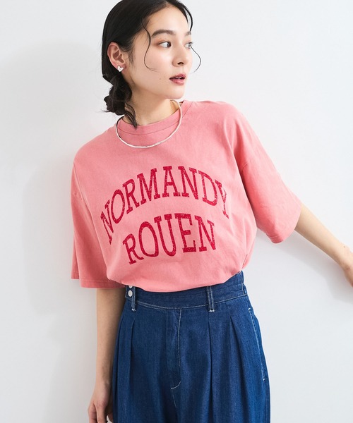 大人カジュアルにヘビーローテーション間違い無しのビッグTシャツ!◆2025春夏◆ <POINT> 製品縫製後にピグメントダイ加工を施し、ロゴにはひび割れた雰囲気を出してヴィンテージ風にプリントしました。 【デザイン・シルエット】 プリントロゴの意味 NORMANDY →フランスの地域 ROUEN →ノルマンディの都市 程良いゆったりシルエットのビッグTシャツです。 【素材】 白でも透けにくい肉厚素材で、肌ざわりの良いコットン素材。 【カラー】 ベーシックに着やすいオフ白ベースとチャコールベース、デニムボトムにも合うヴィンテージオレンジの3色展開。 【おすすめのスタイリング】 ボトムは、Iラインスカートやデニムリラックスパンツなどがおススメ! タンクニットワンピース(BVE15050)とレイヤードして、Tシャツの裾をアシンメトリーに結んだりしてニュアンスのある着こなしも◎ ----------------------------- 裏地:なし 光沢感:なし 透け感:なし 伸縮性:あり 生地の厚さ:普通 季節:春、夏、秋 ----------------------------- 【モデル着用サイズ】 全色モデル身長:168cm、着用サイズ:F ※画像の商品はサンプルです。 実際の商品と仕様、加工、サイズが若干異なる場合がございます。 ※画像によっては実際の色味と異なる場合があります。正しい色味は生地アップ画像をご確認ください。