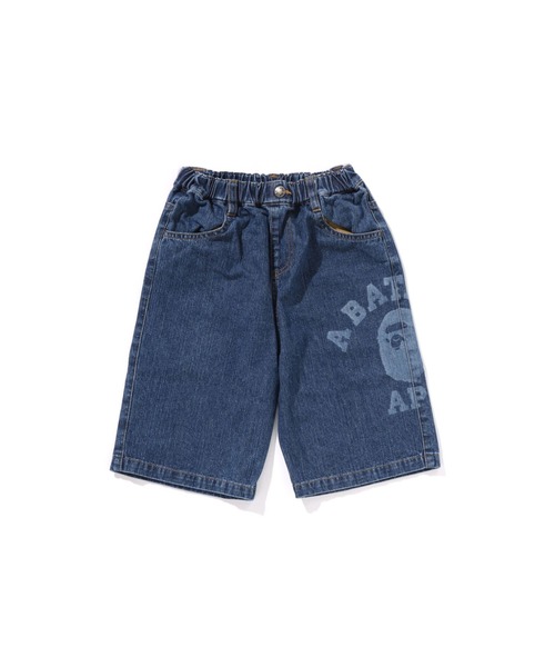 右腿にCOLLEGE ロゴをラバープリントしたデニムショートパンツ。ひざ下丈なので、春先や秋ごろなど気温があたたかい時期にピッタリ。イージーウエスト仕様なので脱ぎ履ぎも簡単。レギュラーフィットシルエット。