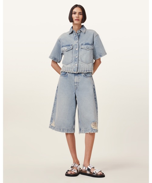 Louieショーツは、ワイドレッグのクリーンカットデニムショーツ。 ハイライズシルエットで仕上げられています。太めのサンダルとサングラスを合わせて、AllSaintsスタイルの春コーディネートに。▼特徴、ポイントボタン留めジップフライロングショーツAラインシルエットポケット×5ディストレス仕上げハイライズフィットモデル寸法: 身長: 5'8"/173cm, バスト: 78cm, ウエスト: 63cm, ヒップ: 88cmモデルはW27サイズを着用しています。洗濯表示:デリケートコース洗い従来の栽培方法と比較して、オーガニックコットンは殺虫剤不使用、水の灌漑技術の改善、生物多様性の保全など栽培における利点があります。ALLSAINTS(オールセインツ)について1994年創業の英国発プレミアムコンテンポラリーブランド。イーストロンドンに本社を構え、メンズ・ウィメンズウェアをはじめとする商品のデザインからストアデザインまで、すべてを自社でコントロールしています。アイコンのバイカージャケットを筆頭に、バッグやシューズなどのレザーグッズ、独特なシルエットのドレス、素材にこだわったニットやシャツ、デニムなどの豊富なアイテムが揃います。現在、世界26か国に250店舗以上を展開中。
