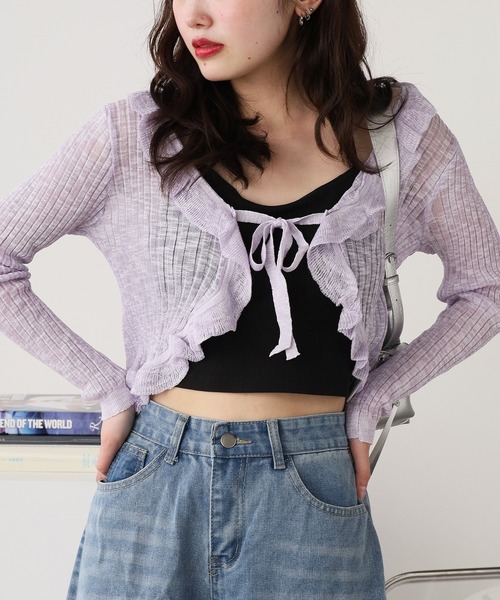 カラーバリエーションが豊富なカーディガン♪ 【ポイント】 ●フロントのリボンデザインとフリルが フェミニンなムードなカーディガンです。 ●カラーバリエーションが豊富で春コーデにぴったりです。 ●短めの丈なのでスタイルアップにも◎ 【おすすめコーディネート】 Tシャツやカットアウトなどをインナーとして 合わせるのもおすすめです。 デニムパンツやバイカーパンツなどのカジュアルな アイテムと相性抜群です。 キャミワンピースに羽織るのも◎ リムレスメガネや調光レンズメガネをプラスすると トレンドライクなスタイルになりおすすめです。 【着用感】 透け感:あり 厚さ:薄地 伸縮性:あり 【ROOPTOKYO ZOZOTOWN お買い物ガイド】 ▼商品をお気に入り登録! 完売商品の再入荷やラスト1点の通知、セール開始時にお知らせ! ▼"ROOPTOKYO(ループトーキョー)"をお気に入りブランドに登録! 新商品や再入荷など、ブランド最新情報をいち早くお知らせ! 是非、ご活用いただきお買い物をお楽しみください!