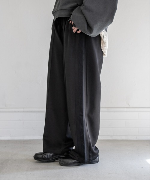 “track pants 路” センタープレスをいれキレイめに落とし込んだトラックパンツ。ポリエステル素材をベースとしたハリがあり、ストレッチ性が特徴。※屋外での撮影画像や光の当たり具合で色味が異なって見える場合がございます。商品の色味はスタジオでの詳細画像をご参照下さい。________________________________________Utusiyo - 現世 -コンセプトは “ 独善的な創作 “好みを全面的に押し付けるモノ作り。