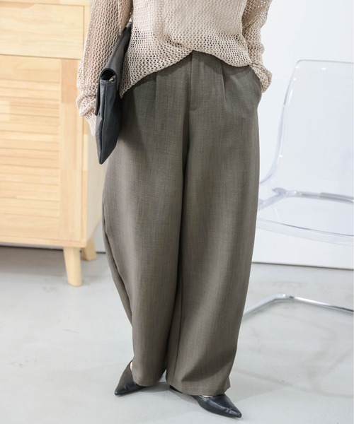 ゆるっとこなれ感 カーブシルエットワイドパンツ オンオフ問わず使えるキレイめカーブワイドパンツ ゆるっとおしゃれ見えが叶うカーブシルエットワイドパンツ。 春秋冬とロングシーズン着回せて、キレイめにもカジュアルにも対応する 素材感が嬉しいポイント◎ボディラインを拾わないワイドシルエットで、 体型カバーも叶います。 ゆるやかカーブ曲線 カーブパンツながら、キレイ見えするシルエット。 さらりとした上品な落ち感のある生地を採用し、 ロングシーズン使える薄すぎず厚すぎない生地感。 おしゃれ見えする拘りDETAIL ハイウエストで足長効果抜群◎リラックス感のある カーブ+ワイドシルエットで体型カバーも叶えます。 ■Fabric 程よい厚みの上品な落ち感のある生地 --------------------- 透け感:なし 裏地:チェックのみあり 厚さ:普通 伸縮性:なし ---------------------" ▼《お気に入り登録》でお得な情報がいっぱい▼ ・「商品のお気に入り登録」で再入荷通知や、ラストの通知、セール通知も受け取ることができます。 ・「ブランドのお気に入り登録」で新商品や再入荷など、お得な情報を受け取ることができます!