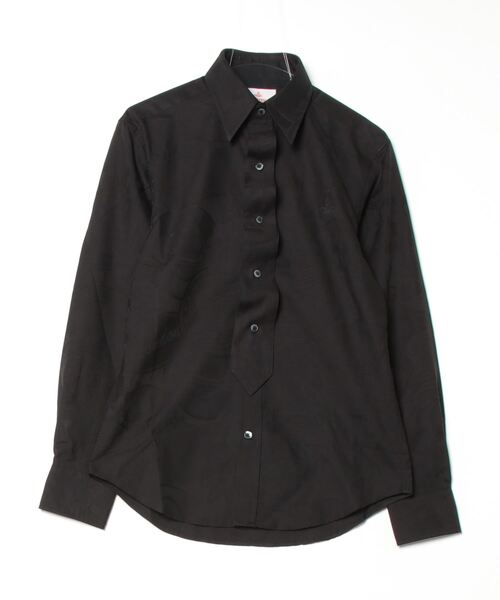 今季複数のアイテムにパッチで使用したアートワークを1カ所に集め、ジャカードで表現した生地を用いたフェイクタイシャツ。タイ部分は装着すると長さの違いにより独特なたるみを生みます。タイを外す、付け方を変えることができ、様々な姿を楽しむことが可能なデザインです。また、ベースの生地の特徴として、光沢の有無、織りで表すコントラストは、凝視してはじめて見えるほど。さりげなさにこだわった生地です。