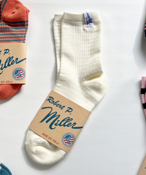 【Robert P.Miller / ロバート・ピー・ミラー】 1937年米国アーカンソー州で、Robert P. Millerによって設立されたアンダーウェアブランド。 独自の針抜き仕様「PANEL RIB/パネルリブ」をはじめ先進的で確かな技術力により1940年代から米国をはじめ世界中で愛されるブランドに成長。 伸縮性や肌ざわりなど長年培われた確かな品質で毎日着たくなるベーシックなウェアを展開しています。 -Robert P. Millerの3Pクルー丈ソックス- アメリカ生まれのアンダーウェアブランド「Robert P. Miller」からクルー丈のボーダー靴下が登場! 【Point】 ・シンプルでデイリーに活躍 ・ブランドロゴのワンポイント入り ・ユニセックスで使用可能 ・ギフト/プレゼントにもおすすめ ベーシックカラーで普段使いしやすいクラシカルなデザインのソックス。 「Robert P. Miller」オリジナルのブランドネームがワンポイントに◎ ふっくらとした凹凸感のあるリブ編みデザイン。 程よい厚みでクッション性があり、優しい履き心地が特徴的。 安定感のあるしっかりとした生地で、オールシーズン使用して頂けます。 嬉しい3点セットで自分用にはもちろん、ギフト/プレゼントにもおすすめ。 レディース・メンズ問わずユニセックスで使用可能です。 ※商品画像は撮影時の光や角度により、実物の色味と異なって見える場合がございます。