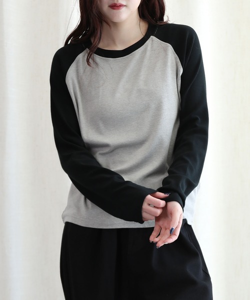 ラグランスリーブが特徴的なカジュアル長袖Tシャツ。異なる色の袖とボディが絶妙なバランスを作り出し、シンプルながらもスタイリッシュな印象を与えます。リラックス感のあるシルエットが、日常のどんなシーンにもぴったりです。 柔らかく、肌触りの良い素材で、伸縮性があり、快適な着心地。 カジュアルなデニムやショートパンツと合わせることでリラックスした日常スタイルの完成。スニーカーやカジュアルシューズで軽やかに仕上げるのがおすすめです。寒い季節には、ジャケットやカーディガンと合わせても素敵です。