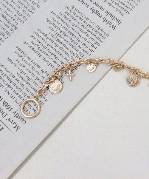 ◇fredy emue◇ 【2025 SS】 ゆらゆらと揺れるモチーフが目を惹くブレスレット ●point ・サイズの違うコインと様々なモチーフが組み合わさった遊び心のあるデザインが魅力的なブレスレットです ・程よい存在感で付けるだけで手元を明るくしてくれます ・トップスの裾から覗くモチーフたちがコーデのアクセントになること間違いなし! ・ゴールドとシルバーの2色展開でシーズンレスでお使いいただけます ・マンテル仕様で着脱が簡単なのも嬉しいポイント! ・ご自身用にはもちろん、ギフトにもおすすめの1点です ●お取扱い上のご注意● *アテンションタグを必ずご確認の上、着用又はお取り扱い下さい。 *店頭及び屋外での撮影画像は、光の当たり具合で色味が違って見える場合があります。商品の色味は、スタジオ撮影の画像をご参照下さい。 *商品画像に関しては出来る限り忠実に表示出来るよう努めておりますが、お客様がご利用のモニターの設定及び特性により、実際の商品と比較し色味に若干の誤差が生じる場合があります。 *画像の商品はサンプルとなりますので実際の商品と仕様、加工、サイズが若干異なる場合がございます。 ※サンプルでの採寸のため、サイズ表はあくまで目安となります。予めご了承ください。 ◇商品のお気に入り登録◇ 【お気に入りに登録 ♡マークをクリック】を是非ご活用ください! 再入荷の通知や、ラスト1点の通知、セールの通知がいち早く届きます。 ◇ブランドのお気に入り登録◇ 新商品や再入荷など、いち早くブランドのお得情報が届きます。