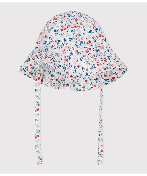 日差しが強くなるこれからの季節にベビーの頭を優しく保護してくれるやわらかなポプリン素材のハットです。あご紐が施されているので風が強い日も安心。実用性とかわいさを兼ね備えたアイテムは出産祝いなどのギフトにもおすすめのアイテムです。※濃色の製品は、摩擦や洗濯の際に色落ちや色移りをする場合があります。中性洗剤で単独洗いをしてください。
