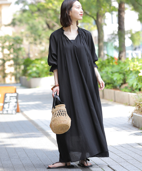 【2025SS】 JOURNAL STANDARD relume ◆ボリューム感が魅力のギャザーワンピース 涼し気な天然素材を使用したワンピースはこれからの季節にぴったり。 程よく開いたネックがバランスよく、アンダーワンピース付きで一枚ではもちろん、 パンツとのレイヤードも可能です。 ご自宅で簡単ケア出来るのも嬉しいポイントです。 ※取り扱いについては、商品についている品質表示でご確認ください。 ********************** 透け感:ややあり (アンダーワンピース付き) 裏地:なし 伸縮性:なし 光沢感:なし 生地の厚さ:薄手 ********************** 【スタッフ着用コメント】 《スタッフM》 身長:157cm/体型:普通/普段サイズ:M/着用サイズ:FREE サイズ感:全体的にゆったりめでとても着やすいサイズ感でした。着丈も長めでかわいいです。 素材感:柔らかくてとても軽い素材感でした。清涼感があって夏も着たいです。 着心地:春はデニムなどと合わせて、夏は一枚でも可愛いです。 ※あくまでも個人の感想です ********************** ※照明の関係により、実際よりも色味が違って見える場合があります。 またパソコン・スマートフォンなどの環境により、若干製品と画像のカラーが異なる場合もございます。 ※商品の色味は、商品アップ画像をご参照ください。 本体:洗濯機洗い(弱), アンダーワンピース:洗濯機洗い(弱)