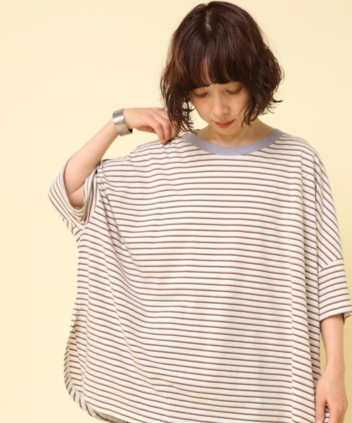 オーバーサイズのマイクロボーダーTシャツ■POINT■オーバーサイズの身頃に、控えめな袖の付いたTシャツ。裾の脇スリットまで繋がったラウンドのラインもポイント。薄手の素材にすることでカジュアルに見えすぎず、大人の女性にも取り入れやすいデザインにしました。■生地■26/-OEコットン天竺をバイオ加工することで、ナチュラルな雰囲気は残しつつ、表面の毛羽を取り柔らかい風合いを目指しました。やや薄手ながらも透け感はあまりなく、軽くて涼しい素材です。ボーダーのピッチをかなり細かくしたこと、柄をマルチにすることでそれぞれのカラーの魅力を引き立てています。■COLOR■クロ×キナリ・キナリ×グレー×キャメル・ブラウン×ピンク▼シリーズアイテムM2466 マイクロボーダーショルダータックプルオーバー生地感:やや薄い・やや柔らかい透け感:透けない伸縮性:ややあり----------------------------------------------------------------------◆◆お気に入り登録しておすすめ情報をゲットしよう◆◆【商品のお気に入り登録】再入荷、残り1点、セール、タイムセール、クーポンなど、いち早く受け取ることができます。【ショップ・ブランドのお気に入り登録】新商品、予約商品、再入荷、ショップのおすすめトピックスなど、ショップ・ブランドの最新情報を受け取ることができます。----------------------------------------------------------------------※商品についている品質表示タグやアテンションタグを必ずご確認の上、着用、またはお取り扱い下さい。※画像の商品はサンプルです。実際の商品と仕様、加工、サイズが若干異なる場合がございます。※撮影場所により、光の当たり具合で色味が異なって見える場合がございます。商品写真はできる限り実物の色に近づけるようにしておりますが、実際の商品と色味が異なる場合がございます。カラーは商品の掛け画像をご参照下さい。