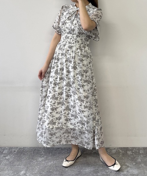 ケープデザインとシフォン生地がフェミニンなワンピース。袖の透け感や前のV明きが抜け感を演出し、より大人な印象に◎ウエストは一周シャーリングゴムになっており、程よくウエストにフィットしてくれるので細見えするのも嬉しいポイント。普段使いはもちろん、お祝いなどのシーンにもお使いいただける一着です。☆★お買い物をお楽しみいただく為に★☆★商品のお気に入り登録完売カラーの再入荷通知や、ラスト1点の通知、セールの通知も受け取ることができます。★ブランドのお気に入り登録新商品や再入荷等、ブランドのお得な情報をいち早く受け取ることができます。