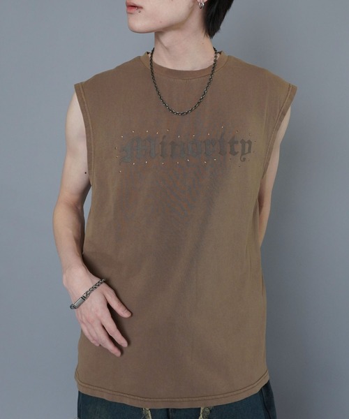 【DESIGN】ヴィンテージ感たっぷりのピグメントノースリーブTシャツが登場!フロントにはシンプルなロゴをあしらい、その周りにはアンティークゴールドカラーのストーンがデザインされています。ストーンのアクセントが、グランジ感をさらに強調し、シンプルながらロックな雰囲気をプラス。韓国ストリートやグランジ、Y2Kファッションにぴったりの1枚です!【FABRIC】綿100%の柔らかな素材で、肌に優しく快適な着心地。ピグメント加工を施し、ヴィンテージ感のある色落ちと風合いを実現。ストーンとともにグランジ感が増し、ロックテイストなスタイルに仕上がっています。※掲載画像(商品、モデル着用とも)につきまして、撮影環境やお客様の閲覧されますパソコンや携帯電話キャリアによって、実際の商品とは多少異なった色に見える場合があります。また表示のサイズ感も実物とは若干異なる場合もございますので、予めご了承ください。※タグ・バーコードのついたシールには、サイトのご案内と異なるカラー名が記載されていることもございます。ご了承ください。- - - - - - - - - - - - - - - - - - - - - - - - - - - -【「お気に入り登録」でお得な情報が届きます】・「商品のお気に入り登録」で再入荷通知、ラスト1点の通知、セール通知などを受け取ることができます。・「ブランドのお気に入り登録」で新商品、人気アイテムの再入荷など、お得な情報を受け取ることができます。- - - - - - - - - - - - - - - - - - - - - - - - - - - -