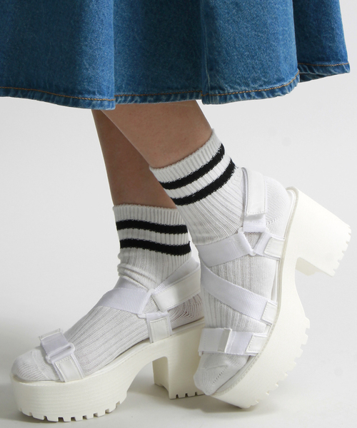 厚底ヒールを採用したサンダル。シンプルになりがちな春夏の足元をスタイリッシュに演出します。素足で履いて頂くのは勿論、今季はソックスと組み合わせるような着こなしもオススメ。定番の合わせやすさはそのままにデザインで違いを持たせたひと品。定番のモノトーンに加えて、春夏らしいパステルカラーを含む4色展開でご用意しました。お値段も手頃で、ご自身用は勿論、プレゼントにもオススメです。 M=23.5cm相当 L=24.5cm相当 ※履き方・足型等、個人差がございますので、あくまでも参考程度にお考え下さいませ。 ■厚底靴に関しての注意事項■ ※ファッション性を重視した商品の為、履きなれない状態での長時間の着用はお控え下さい。 ※歩くために必要な強度を保持している商品ではありますが、ファッション性を重視した商品のため、走る・跳ねる等の行為をとられた場合は瞬間的に想定以上の負荷がかかり商品が破損する恐れがありますのでご注意ください。 ※足を捻る・挫くなどして転倒しかけた際、場合によっては怪我を未然に回避する為にバンドの引き抜けや表底の剥離が発生する事がございます。 ※段差や傾斜を歩行される際には、ご注意下さい。 ※足首を痛める恐れがある為、厚底靴やヒールの高い靴を着用しての自転車のご利用はお控え下さい。 ※厚底靴を着用した状態でのお車の運転は各都道府県の条例により禁止されています。お車を運転される場合は、厚底靴の着用はおやめ下さい。 +++厚底アイテム一覧はこちら+++ WEGOの特集ページはコチラ