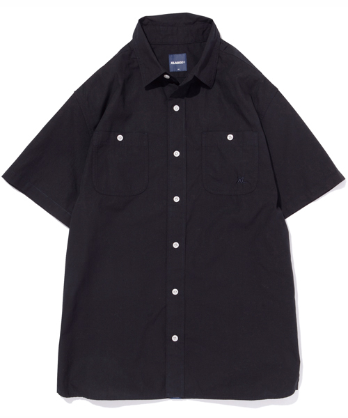ブロード生地を使用した半袖レギュラーカラーシャツ。ガーメントダイ加工をしておりシンプルながら独特の色合い、風合いが出ています。左フロントポケット部分には同系色の「XL」刺繍が入ります。フロントの前立て裏にワンポイントのOGゴリラパッチもさりげなく付きます。