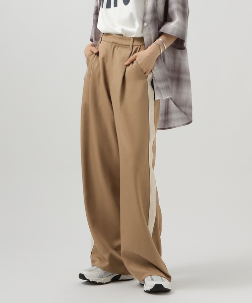 大人っぽさがありつつ、個性を出せる1枚ーーー★おすすめポイント★[1]イージーケアが叶うシワになりにくい素材[2]スポーティなサイドラインデザイン[3]スラックスタイプでキレイ目にもーーー[fabric]細いツイル目が綺麗見えする素材感。ポリエステル素材なので、シワになりにくくイージーケアが叶う素材。[design]アイボリーカラーのアクセントになるサイドライン仕様で、同カラーの光沢パイピングの挟み込みもポイントに。タック入りのストレートワイドシルエット。スポーティなサイドラインデザインですが、スラックスタイプなのでキレイ目にも着用できるデザイン。[styling]デニムブラウスなど、フェミニンなディテールのアイテムと合わせるた、甘辛MIXスタイリングがおすすめ。パーカーやシャツを合わせてカジュアルコーディネートも◎-------------------------------------≪お買い物をよりお楽しみいただくために≫◆商品のお気に入り登録(ハートマークをクリック)完売カラーの再入荷通知や、完売間近の通知、セールの通知も受けることができます。◆ブランドのお気に入り登録新商品や再入荷など、いち早くブランドのお得な情報を受け取ることができます。-------------------------------------