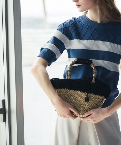 夏のお出かけに映えるカゴBAG 水草のカゴに異素材の布帛を篝縫いのように巻き付けたデザイン。 上部は巾着仕立てで中身が見えてしまう心配もなく安心の使い心地です。 程よいサイズ感でアクセサリー感覚が持てるので夏のイベントスタイルにおすすめの一品です。 ※屋内外の光や照明の当たり具合で、実際の商品の色味とカラー別画像の色味に違いが発生する場合がございます。色味はスタジオ撮影の詳細画像にてご確認ください。 ※生地の寄り画像が最も実物に近い色味となります。 ーーーーーーーーーーーーーーーーーーーーーーー ▼ 商品のお気に入り登録 ▼ 完売カラーの再入荷通知や、ラスト1点の通知、 クーポン開始、セールの通知も受け取ることができます。
