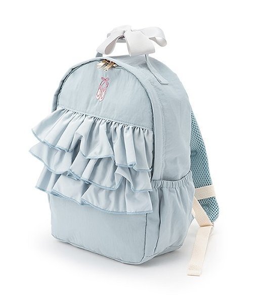 \petit mainの定番リュックの可愛さがレベルアップ?/ 贅沢に施されたチュールが大人気の定番リュック トレンドにちなんだバレエシューズの刺繍が施されてバージョンアップ! チュール、刺繍に加え持ち手にはリボンモチーフの欲張りデザインが ガーリーさ際立つ淡い色味の定番2色とお姉さんっぽさが素敵な新色ネイビーを加えた 3色の展開でお好みが見つかること間違いなし 容量8Lで優れた機能性はお出かけにばっちり 足を延ばしてお出かけしたくなるこれからの季節には大活躍です!