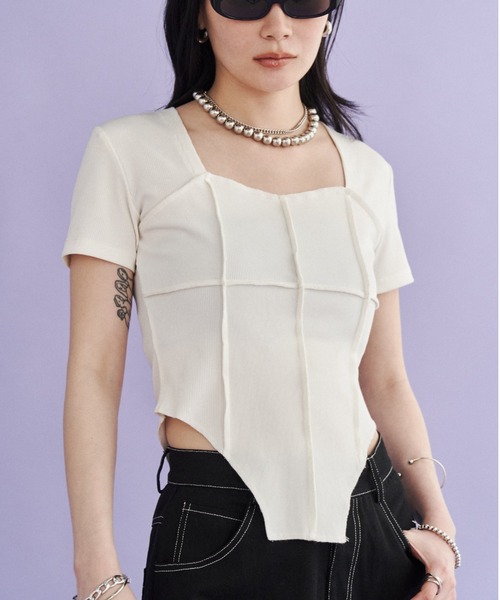 ボディースーツのようなデザインでシルエットが綺麗な スタイルアップ効果抜群のテレコリブトップスに半袖バージョンが登場! ■ デザイン ウエストから裾にかけて美しくフィットするシルエットが魅力の、ボディースーツライクリブTシャツ。 フロントに施された切り替えラインがスタイルアップ効果を引き立て、全体の印象をすっきりと見せてくれます。 スクエアに開いたネックラインが顔周りをシャープに見せ、小顔効果も抜群。 適度なフィット感がありながらも胸元が見えにくい安心設計で、動いても気にならない快適な着心地です。 ストレッチの効いた上品な細リブ素材を使用し、重ね着にも使いやすいデザインに仕上げています。 ■ 素材 長袖バージョンよりもさらっとした夏仕様の素材感で、汗ばむ季節にも快適に着られる仕上がり。 ストレッチ性のある細リブ素材がボディラインに心地よくフィットし、快適さと美シルエットを両立します。 ■ スタイリング 一枚でさらっと着ても様になるほか、ビスチェやキャミトップスのインナーとしても活躍するアイテム。 裾をアウトにしても、ボトムにインしてボディスーツ風にスタイリングしても◎。 これからの季節には、レザージャケットやカーディガンとのレイヤードもおすすめ。 デニムやワイドパンツ、タイトスカートなど、どんなボトムにも合わせやすく、モード感のある着こなしが楽しめます。 シルエットが美しく決まるため、コーディネートの幅が広がる万能トップスです。 --------------------------------- 透け感:なし 裏地:なし 伸縮性:あり 生地の厚さ:普通 --------------------------------- ※詳しいお手入れ方法は商品タグをご参照ください。 ―SOLACE/ソレイス― シンプルながらもひとクセある 身に纏うだけで高揚し、自信が溢れるスタイル。 遊び心のあるセンシュアルなカジュアルモード を 手に取りやすいプライスにて提案します。 【SNS掲載情報】 @solace___official 公式Instagramアカウントにて新作情報をはじめ 多彩なコンテンツを掲載しております。ぜひご覧くださいませ。 【商品のお気に入り登録】 完売カラーの再入荷通知やラスト1点の通知 プライスダウンの通知も受け取ることができます。 ぜひご登録ください◎ 【ブランドのお気に入り登録】 新商品や再入荷など、 ブランドの情報をいち早くお知らせします! ぜひご登録ください◎ ※ATTENTION※ ・屋外の光や照明の当たり具合で、実際の商品の色味と カラー別画像の色味に若干の違いが発生する場合がございます。 ・詳細画像と併せてご確認の上、ご注文いただきますようお願い致します。 ・サイズにつきましては、すべて平台に平置きにし測定しております。 ・商品によっては実際の製品上がりサイズと1~3㎝程、 多少誤差が生じる場合がございます。 予めご了承ください。