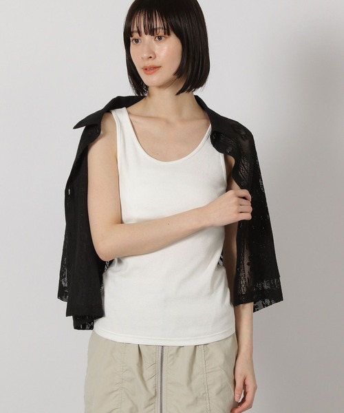 伸縮性のあるテレコ素材のタンクトップ。インナーとして使いやすいジャストサイズのシルエットで、シーズン問わずお使いいただける1枚です。シンプルでも凹凸のある表面感がアクセントになり、羽織のインナーとしてもおすすめ。【素材】伸縮性のあるテレコ素材を使用。【スタイリング】シンプルなデザインなので合わせるアイテムを選ばずスタイリングできます。ワードローブとしても最適なアイテムです。