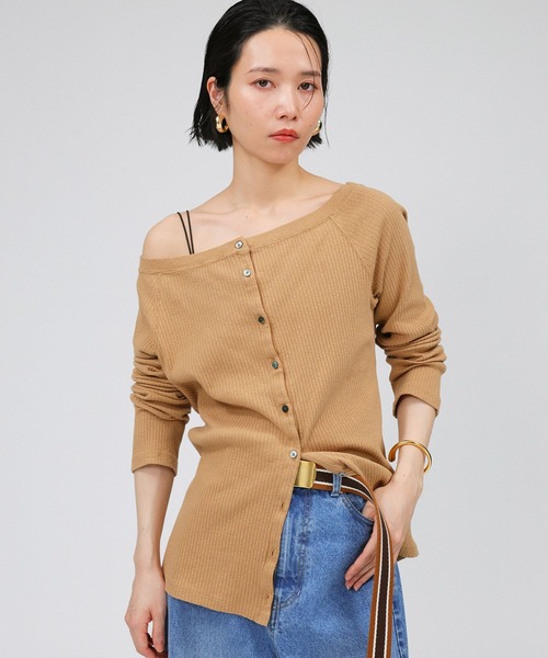 2025 SUMMER COLLECTION こなれた肌見せが叶う、ヴィンテージライクなオフショルカーデ ーーー ◆DETAILポイント◆ ・ヴィンテージライクなオフショルカーデ。 ・程よく開いた襟ぐりででこなれた肌見せが叶います。 ・キレイめからカジュアルなデニムまで、どんなボトムにも合わせやすい万能デザイン。 ・ボタンを外してルーズに着こなしたりと、スタイリング次第で様々な表情が楽しめます。 ーーー ◆COLORポイント◆ ブラック:着回しの効くアイテムだからこそ持っていたいベーシックなブラック。 チャコール:夏でも重たくない、スタイリングをぐっとこなれさせるチャコール。 サンドベージュ:夏にぴったりなヘルシーで女性らしい、肌なじみの良いサンドベージュ。 ◆FABRICポイント◆ ・表面にカジュアルなスラブ感のあるフライス生地。 ・柔らかく肌になじむランダムリブ素材。 ・ヴィンテージライクな表情と風合いがポイントです。 ◆セットで着用いただけるアイテムをご用意しております。(※別売り)◆ ヴィンテージフライスタンク 品番#324395 ・・・・・・・・・・・・ 洗濯:洗濯機OK 透け感:透けない 伸縮性:あり 生地の厚さ:普通 裏地:なし ※こちらは参考情報となります。カラーにより多少の誤差がございます。 ・・・・・・・・・・・・ 【BABYLONE / バビロン】 "Be myself" 好きな色 好きなかたち 好きな着こなし 自分の好きは自分だけが知ってる 自分らしい自分を好きでいたい 時代のニュアンスを取り入れながらも まわりにとらわれない ブレないしなやかな女性たちへ 【気になる商品は「お気に入り」登録を】 ハートマークをクリックし、お好きなカラーを選んでお気に入りに登録すると 在庫残り僅かの通知、再入荷通知などの情報を受け取ることができます。 ※商品の取り扱い方法につきましては、タグ等に記載されている「取り扱い上の注意」「洗濯表示」をご確認ください。 ※屋外での撮影画像は、光の当たり具合で色味が違って見える場合があります。あらかじめご了承ください。なお商品の色味は、スタジオ撮影の画像をご参照ください。
