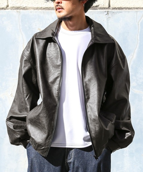【羽織るだけでコーデが決まるレザーブルゾン】 柔らかい質感が魅力的なフェイクレザーを使用したジップアップブルゾンの登場。 本革のようなシボ感とマットで微光沢の質感にこだわった高級感のあるアウターです。 メンズはもちろん、レディースにもオーバーサイズコーデとして使えるユニセックスアイテム! ルーズシルエットで着る人を選ばず、ストリートスタイルにピッタリです。 本革に比べて軽やかな着心地なので、シーズンを通して着回したくなる万能アウター! 秋から春先まで長いシーズンで活躍でき、重宝する事間違いなしのおススメアイテムです。 ■ リアルなPUレザー SDGsや便利さの観点から、ここ近年では本革よりも主流になりつつあるPUレザー(合成皮革)。 安価なだけではなく、お手入れが簡単で、本革よりも軽いので着心地もストレスが少ないのがメリットです。 微光沢のシボ感がリアルな質感で落ち着きのある印象がおススメポイントです。 ■ 実用性のあるポケット フロントのポケットは大き目の作りで、 更に内側に胸ポケットまで施されているので、 貴重品や小物の収納に困らない実用性のあるデザイン。 荷物を少なくしたい方にピッタリのアイテムです。 ■ トレンドのビッグシルエット ゆったりとしたリラックス感のある着こなしが魅力のオーバーサイズブルゾン。 ゆとりのある身幅やドロップショルダーで絶妙なルーズ感を演出できます。 一枚で存在感を発揮でき、トレンド感溢れる抜け感のあるコーデが完成します。 ■ ユニセックスアイテム カジュアル、ストリート、韓国系など幅広いスタイルにマッチする万能さ。 メンズ・レディースを問わない男女兼用で使えるユニセックス商品で、プレゼントにもオススメ。 ペアやカップルコーデのお揃いにも最適で、家族でシェアしたりと幅広く活躍!