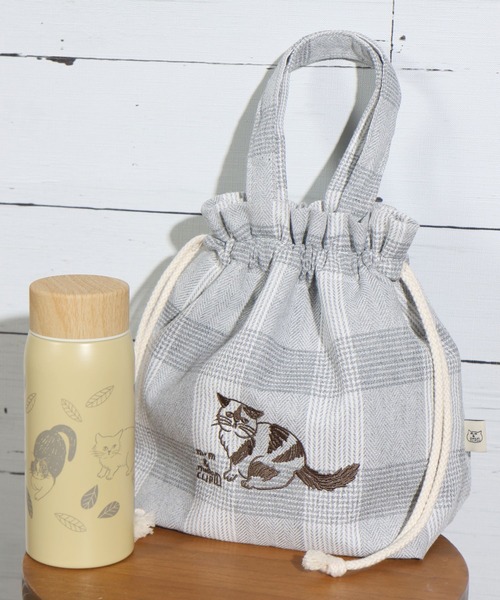 松尾ミユキさんの描いたネコの刺しゅうが可愛い巾着袋 ナチュラルな色使いで、ネコは刺しゅうでデザインしている ため刺しゅうならではの奥行き感や上品さも魅力です。 お弁当を入れやすいマチと、持ち運びに便利な持ち手付き。 巾着の内側は保冷シートになっており、さらに保冷剤を入れれば ひんやりと保つことができ、これからの季節にも重宝します。 ※この製品は簡易保冷バッグです。長時間ご使用の際は保冷剤を併用してください。また、防水ではありませんので、結露等により濡れることがあります。 ーーー ランチ巾着 弁当袋 松尾ミユキ ねこ 刺しゅう 保冷 ーーー