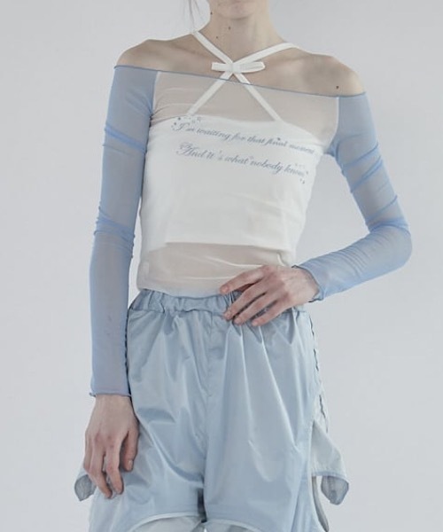 lilLilly 2025Spring&Summer Collectioncolor WHITE/BLUE/BLACK日焼け対策にも嬉しい♡メッシュトップスが登場!⭐️POINT(1)ラグランTシャツをオフショルデザインでガーリーに♡⭐️POINT(2)透け感のあるメッシュトップスだからこそキャミソールとのレイヤードスタイルを楽しめる♬▼マルチリボンカップ付きキャミソールhttps://zozo.jp/shop/lillilly/goods/90408527/?▼クロスリボンキャミソールhttps://zozo.jp/shop/lillilly/goods/84604438/?▼ウエストクロスカップ付きキャミソールhttps://zozo.jp/shop/lillilly/goods-sale/84732713/?〈サイズ詳細〉着丈50cm 身幅36cm裾巾33cm 袖丈59cm…………………………………………透け感:あり厚さ:★☆☆☆☆生地の伸縮性:リブ部分のみあり…………………………………………※照明・パソコン・スマートフォンなどの環境により、若干製品と画像のカラーが異なる場合もございます。予めご了承ください。※商品画像はサンプルのため、色味やサイズ等の仕様に変更がある場合がございます。--------------------------------------------❤︎お気に入り登録ハートをクリックしてお気に入りに登録していただくと完売カラーの再入荷や残り1点の通知、セール通知を受け取ることができます。❤︎ブランドのお気に入り登録新商品や再入荷、ショップのおすすめトピックスやセール対象など、いち早くブランドの情報を受け取ることができます。❤︎メルマガ登録lilLilly ZOZO 限定のクーポンなどお得な情報やニュースを一足先にお届けします。--------------------------------------------