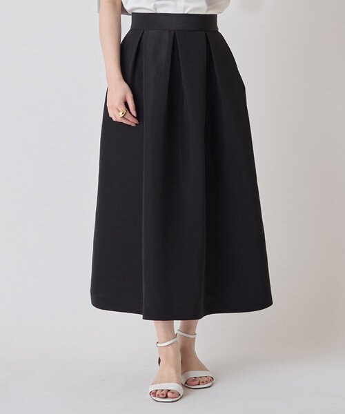 こちらの商品は 9月30日(火)頃までの販売予定となっております。ご検討中の方は、ぜひお早めにお求めください。■アイテム上品なタック使いがポイントのスカート。ソフトな風合いを維持しながらも、適度なハリ感をもつグロッシー素材を使用。角度を変えると、横糸の光沢が見え、キラキラとした表情を演出。ウエスト部分には甘さを抑えたランダムなタックをふんだんに施すことで程よいボリューム感が楽しめます。ブラウスやジャケットに合わせたフォーマルスタイルはもちろん、シンプルなTシャツを合わせたラフな着こなしもオススメです。▼おすすめスタイリングアイテムフレアデザインスリーブブラウス■素材・洗濯表示素材:トリアセテート78% ポリエステル22%洗濯表示:手洗い可※着用時・洗濯時は、必ず取扱い表示・タグをご確認の上、お取り扱い下さい。-------------------------------------伸縮性:ウエストのみあり光沢:あり厚み:ふつう透け感:なし裏地:なしポケット:ありファスナー:あり-------------------------------------《LIVETART/リヴェタート》BEARDSLEYのインブランドLIVETART(リヴェタート)美しい刺繍やレース、しなやかなフォルム、鮮やかな色彩、大胆なプリント。アートに触れるような心地よい緊張感であらたまった場所へも気負いなく身につけられる。日常と非日常をつなぐ、いつもより少し高揚感に包まれる服をご提案。《お取り扱い上のご注意》・タンブル乾燥不可《予約商品について》・サンプルの為、素材情報、洗濯表示については企画段階の情報を記載しております。公的機関での試験データ結果を受け、量産にあたり混率や洗濯方法の変更が発生する場合がございますので、ご了承くださいませ。・サンプルでの撮影、計測をしております。商品の仕様が一部変更になる場合がございます。・撮影サンプル品はブランドタグがついておりません。製品にはタグがつきますので、製品の表に縫い糸が見える場合がございます。・工場の生産の都合上、納期が変更になる場合がございます。検品や輸送の関係で、発送日が前後しますのでご了承ください。また、入荷状況により、お客様への発送が店頭販売より遅れる場合もございます。・店頭に陳列していた商品も含まれる場合がございます。《商品画像について》ご覧頂いている商品の写真につきましては、できるだけ実物の色に近くなるように努めておりますが お使いの環境(モニター、ブラウザ等)の違いにより、色の見え方が実物と若干異なる場合がございます。 予めご了承ください。《ハートをタップして商品のお気に入り登録》登録カラーの商品の「残りわずか」「再入荷」「値下げ」通知を受け取ることができます。各ショップアプリにてブランドフォロー 新商品などの入荷情報、最新のニュースやお得な情報を受け取ることができます。