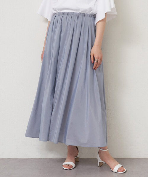 ■アイテム動くたびに生地が揺れる ロング丈のスカート。ウエストはリラックスに着れる仕様しており、ニュアンスたっぷりに施されたギャザーでふんわりとした軽やかなシルエットがフェミニンな一着。シンプルなトップスを合わせるだけでスタイリングが決まるので、ギャザースカートはワードローブにあると便利なアイテム。オンオフどちらのスタイリングでも着ていただけます。■素材・洗濯表示素材表地:綿62% ポリエステル38%裏地:ポリエステル100%洗濯表示:手洗い可※着用時・洗濯時は、必ず取扱い表示・タグをご確認の上、お取り扱い下さい。--------------------------------------伸縮性:ウエストのみあり光沢:あり厚み:うすい透け感:あり裏地:ありポケット:ありファスナー:なし--------------------------------------《LIVETART/リヴェタート》BEARDSLEYのインブランドLIVETART(リヴェタート)美しい刺繍やレース、しなやかなフォルム、鮮やかな色彩、大胆なプリント。アートに触れるような心地よい緊張感であらたまった場所へも気負いなく身につけられる。日常と非日常をつなぐ、いつもより少し高揚感に包まれる服。《お取り扱い上のご注意》・タンブル乾燥不可《予約商品について》・サンプルの為、素材情報、洗濯表示については企画段階の情報を記載しております。公的機関での試験データ結果を受け、量産にあたり混率や洗濯方法の変更が発生する場合がございますので、ご了承くださいませ。・サンプルでの撮影、計測をしております。商品の仕様が一部変更になる場合がございます。・撮影サンプル品はブランドタグがついておりません。製品にはタグがつきますので、製品の表に縫い糸が見える場合がございます。・工場の生産の都合上、納期が変更になる場合がございます。検品や輸送の関係で、発送日が前後しますのでご了承ください。また、入荷状況により、お客様への発送が店頭販売より遅れる場合もございます。・店頭に陳列していた商品も含まれる場合がございます。《商品画像について》ご覧頂いている商品の写真につきましては、できるだけ実物の色に近くなるように努めておりますが お使いの環境(モニター、ブラウザ等)の違いにより、色の見え方が実物と若干異なる場合がございます。 予めご了承ください。《ハートをタップして商品のお気に入り登録》登録カラーの商品の「残りわずか」「再入荷」「値下げ」通知を受け取ることができます。各ショップアプリにてブランドフォロー 新商品などの入荷情報、最新のニュースやお得な情報を受け取ることができます。