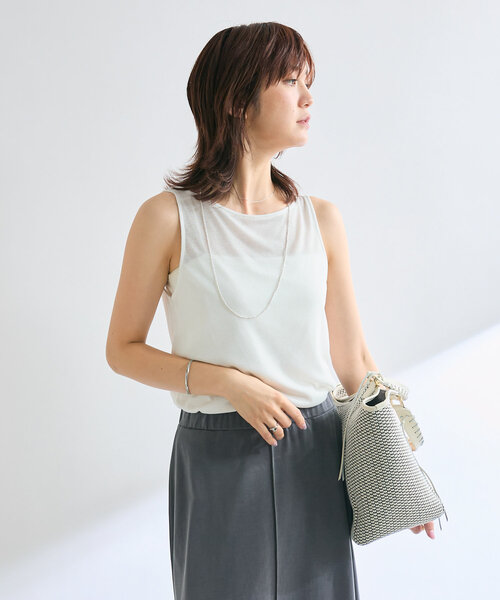 リラックス感ある大人タンク。●デザインカジュアルになりすぎない印象のタンクトップ。1枚でも、シャツや羽織のインナーとしても、使えるアイテムです。アームホール、身巾は程よいゆとりを持たせ、リラックス感ある仕上がりに。首元はすっきりとしたボートネックでデコルテをきれいに見せてくれます。裾はラウンドデザインになっており、インしないでもすっきり着用いただけます。色違いでレイヤードしていただくのもおすすめです。●素材ポリエステル 68% レーヨン 32%・柔らかく、肌なじみの良い素材洗濯方法:手洗い可透け感:ややあり裏地:なし伸縮性:あり生地の厚さ:ややうすめ光沢:なし【MONN.:. (モン)】シナモン カルダモン 好きなスパイスの語尾から抜き取って・・・ほんの少し加えただけで その姿こそ見せなくても 香り、味わいも抜群の存在感を発揮するスパイスのようなしょっぱい料理や甘いお菓子や飲み物に 無限の組み合わせの可能性があるスパイスのような香った瞬間、味わった瞬間 ちょっとした刺激と幸福感に満たされるスパイスのようなそんなお洋服があったらどんなに幸せなことだろう。そんな想いを込めて生まれたブランドです。2022AWよりSTART。--------------------------------------------------------------------------------【注意点】※画像の商品は光の照射や角度、お使いのモニター環境により、 実物と色味が異なる場合がございます。※入荷状況により、お届け予定が前後する場合があります。※工場の生産の都合上、納期が変更になる場合がございます。検品や輸送の関係で、発送日が前後しますのでご了承ください。また、入荷状況により、お客様への発送が店頭販売より遅れる場合もございます。※追加生産商品は、一部の店舗、通販で販売中の場合がございます。 予めご了承下さい。※サンプルでの撮影、計測をしております。商品の仕様が一部変更になる場合がございます。※撮影サンプル品はブランドタグがついておりません。製品にはタグがつきますので、製品の表に縫い糸が見える場合がございます。----------------------------------------------------------------------【お買い物をもっと便利に楽しく♪】●「商品のお気に入り登録」で・・・ラスト1点や再入荷の通知が届きます。登録して頂いた商品だけが対象となる、あなただけのタイムセールが開催されることも!●「ブランドのお気に入り登録」で・・・新商品や再入荷など、いち早くブランドのお得な情報を受け取ることができますので、ご登録をおすすめします!--------------------------------------------------------------------------------