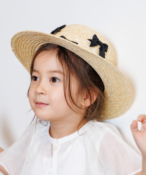 トレンド感たっぷりのリボンがいっぱいついたストローハット。 まあるいシルエットがかわいいデザインです。 女の子のコーデを格上げしてくれるワンポイントに!