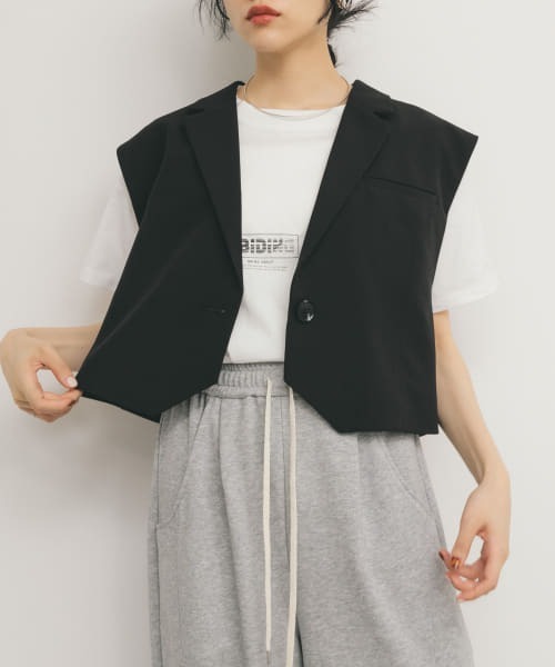 【マニッシュな印象に仕上げてくれるテーラードベスト】 程良くルーズなサイズながらも、胸ポケット仕様にすることでマニッシュな印象に仕上げてくれるテーラードベスト。少し大きめの釦や、スタイルアップが期待できる丈感もポイント。ワードローブにあると心強く、着回し力の高い1着です。 COORDINATE レーストップスや柄アイテムにもマッチしやすく、夏はタンクトップやキャミソールの上からさらっと羽織るだけで◎同素材のコクーンタックスカート(KBA5-27J110)や、サイドタックスラックス(KBA5-24J320)を合わせたセットアップの着こなしもおすすめです。 【2025 Spring/Summer】【25SS】 総重量 : 約230g ※商品画像は、光の当たり具合やパソコンなどの閲覧環境により、実際の色味と異なって見える場合がございます。予めご了承ください。 ※商品の色味の目安は、商品単体の画像をご参照ください。 ▼お気に入り登録のおすすめ▼ お気に入り登録商品は、マイページにて現在の価格情報や在庫状況の確認が可能です。 お買い物リストの管理に是非ご利用下さい。 素材感 透け感 : なし 伸縮性 : ややあり 裏地 : あり 光沢 : なし ポケット : あり one