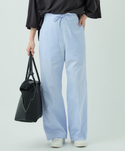 セットアップで着用可能。ラフに着用出来るパンツ -design- 着用時のシルエットはストレートでセンタープレスが入っているのですっきりとしています。 ウエスト仕様はドロストになっているので、サイズ調整が可能です。 パジャマパンツの様にラフに着用出来る様なイメージで作りましたが、足元はヒールを履くなど少し大人っぽくまとめるとバランスよくデイリーに着用することができます。 同素材のシャツジャケットをさらっと羽織ってセットアップの着こなしもお勧めです。 ▼同素材のジャケットはこちら▼ 329518#パジャマケット -how to care- こちらの商品は、洗濯機でのお洗濯が可能です。 -fabric- サックスの素材は1953年、スペイン・バルセロナにて創業したSIDOGRAS社の素材です。 細番手のコットンで“からみ織り”の素材になります。 ドライタッチで肌離れが良く、通気性にも優れています。 また生地にしっかりとコシがあり、仕立て映えのする商品です。 細番手ならではの光沢感が美しい交織素材です。 ベージュの素材は国内の素材で、120/2の非常に細番手の糸を最大に打ち込み反発感を感じるタイプライター素材に仕上げています。 【Chaos(カオス)】 “カオス”の時代にあっても、自由かつインディペンデントな感性を大切にする大人の女性たちへ。素材やディティールにこだわったオリジナルと国内外で買い付けたユニークかつアーティな感覚のセレクトをミックスした発信をしています。 “大人の為の上質な日常着” For independent, free-spirited women navigating the “Chaos” of our time. Our original items are crafted to the finest detail with carefully selected materials. We also offer the most unique and artistic pieces collected from Japan and the world. “Fine clothes for the Modern Woman” ※商品の取り扱い方法につきましては、タグ等に記載されている「取り扱い上の注意」「洗濯表示」をご確認ください。 ※屋外での撮影画像は、光の当たり具合で色味が違って見える場合があります。あらかじめご了承ください。なお商品の色味は、スタジオ撮影の画像をご参照ください。 ....................≪INFORMATION≫...................... ▼商品のお気に入り登録をおすすめします▼ ♡をクリック!完売カラーの再入荷や、ラスト1点の通知、セールの際の通知を受ける事ができます。 ▼ ブランドのお気に入り登録 ▼ 新商品や再入荷など、ブランドのお得な情報をいち早く受ける事が出来ます。 こちらもぜひご登録ください。