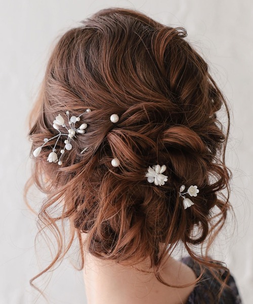 フラワーパールモチーフを立体的に組み合わせたヘアピンと シンプルで使いやすいイミテーションパールのヘアピンの4本セット フラワーモチーフは可憐な花を合わせ、上品なイメージヘ。 Uピンになっているため差し込むだけで華やかな印象に。 ハーフアップやアップスタイル、編みおろしスタイルにもおすすめ! 商品番号:25403/25406/25407/25414 と合わせてシリーズとしてお使いいただけます。 ※商品画像は、光の当たり具合やパソコンなどの閲覧環境により、実際の色味と異なって見える場合がございます。予めご了承ください。 ◼オススメシーン◼ 結婚式・2次会(二次会)・1.5次会・披露宴・お呼ばれ・成人式・同窓会・謝恩会・パーティー・演奏会・食事会まで、多様なシーンのコーディネートにご使用いただけます。 ◼商品のお気に入り登録 ◼ 完売カラーの再入荷通知や、ラスト1点の通知、セールの通知も受け取ることができます。 気になるアイテムは《お気に入り登録》が絶対オススメ! ◼ブランド紹介◼ Dress Shop " Dorry Doll"(ドリードール) 結婚式やパーティーなどのフォーマルシーンはもちろん、発表会、謝恩会、入学式や卒業式などのセレモニーシーン、そして女子会や食事会などのカジュアルシーンなど、多様なシーンにご使用いただけるドレススタイルをご提案させていただいております。 また、トータルコーディネートがきるよう、羽織や、パーティーバッグ、パーティーシューズ、アクセサリーなども豊富に揃えております。