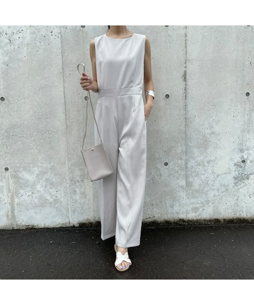 さらっとした触り心地で、上品な印象を与えるオールインワン。 1枚でコーディネートが完成するオールインワンは、ワードローブにぜひプラスしていただきたいアイテム♪ また、センタープレスで脚長効果になるのも嬉しいポイントです◎ オールシーズン着られるアイテムで、小物使いでカジュアルにもエレガントにも雰囲気を変えられる1着です。 ※モデル身長:161㎝ ◾️クリックポストにて代引きをお選び頂いた方は、400円プラスさせていただき、宅配便代引きにて発送させていただきますのでご了承下さい。 ◾️カラー オフ ◾️サイズ 総丈:128cm バスト:45cm 肩幅:34cm ウエスト:38cm ヒップ:55.5cm 股下:60cm 裾幅:34cm ※多少の誤差は予めご了承ください。 ◾️素材 表地 ポリエステル93% ポリウレタン7% 裏地 ポリエステル100%