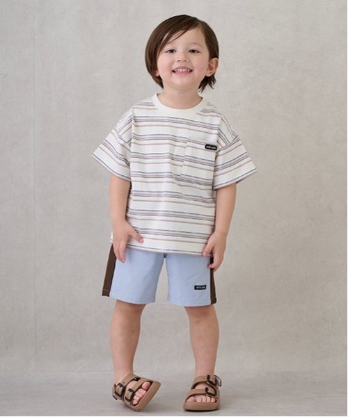 petit main夏の大定番水陸両用シリーズより 着回し抜群!おしゃれな配色でコーデがまとまるサイドラインハーフパンツ 耐塩素加工が施され速乾性に優れた生地は 日常使いはもちろん水遊びやプールでも 使用OKで春夏のアクティビティで大活躍間違いなし! ベースの色にアクセントで加えられたサイドラインの配色が どれもおしゃれでつい何着も欲しくなってしまう、、、 全体的にワイドなシルエットに加えさらりとした生地感 全体的に伸びもよくとにかく履き心地がいい! デザイン性も機能性も優れたハーフパンツ この春夏大活躍!リピート買い間違いなし! ???9752103:【水陸両用】サイドラインハーフパンツで兄妹お揃いコーデができます 【透け感】透けない 【生地の厚さ】普通 【伸縮性】あり 【裏地】なし 【ポケット】あり 【アジャスター】なし