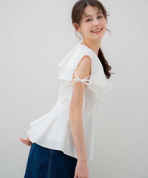 ハリ感のあるタイプライター素材を使用したペプラムブラウス。トレンドのビックカラーデザインで、ふんわりと二の腕カバーしてくれるのも嬉しいポイント。比較的長め丈に設定しているので、チェーンベルト付きワイドパンツやデニムパールスカートとの合わせがおすすめです。同素材のティアードフリルスカート(品番:5532056)と合わせてワンピース見えするセットアップとしても着用いただけます。■商品特徴裏地:なし生地の厚さ:普通透け感:なし伸縮性:なしポケット:なしファスナー:なし※不良商品・配送不備以外の返品交換はお受けできませんので予めご了承ください。※画像の商品はサンプルです。実際の商品と色味、仕様、加工、サイズ等が若干異なる場合がごさいます。※商品の色味・仕様は、商品単品トルソー画像をご参照下さい。※撮影時の照明やお使いのパソコン・スマートフォンの設定等により画像の色が実物と異なって見える場合がございます。予めご了承ください。