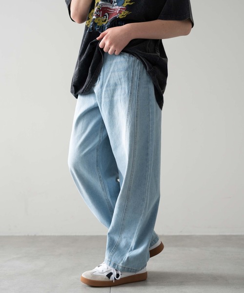【今期トレンドのバレルレッグデニムパンツからkidsサイズが登場】■Detailバレルレッグとは「樽」を意味し、ヒップから裾にかけて丸みを出した強めのテーパードシルエット。センターシームが入っていることにより丸いシルエットが強調され過ぎず、脚のラインをきれいに見せてくれます。デニム素材でどんなアイテムとも相性が良く幅広くお使いいただけてオールシーズン使えるアイテムです。また立体裁断デニムになっているので平面的ではなく、立体的なシルエットが特徴のデニムです。小柄な女性や、親子コーデにもオススメ★★大人サイズはこちら↓↓WE25SS01-M0008 イージー3DバレルレッグデニムパンツS,M,Lの豊富なサイズ展開でご用意♪※詳細はサイズガイドをご参照ください♪■Styling幅広いスタイリングでお使いいただけてグラフィックアイテムやカレッジ系のTシャツと合わせた定番のスタイリングはもちろんチェックシャツやワッフルロンTなどを合わせると今期っぽい着こなしになりオススメです。■point・デニムパンツ・バレルレッグ・立体・オーバーサイズ・韓国ストリート・カジュアル・大人・プチプラ・春服・夏服・ユニセックス※撮影状況や光の当たり具合、 ご覧になる環境(PCのモニタやスマホの画面)などにより、 色合いが異なって見える場合があります。※写真と実物では色や風合いが若干異なる場合がございますので ご了承ください。【WEGO ZOZOTOWN お買い物ガイド】▼商品のお気に入り登録♡をクリック!完売カラーの再入荷通知や、ラスト1点の通知、セールの通知をお知らせします。▼ブランドのお気に入り登録新商品や再入荷、クーポンやセール情報など、いち早くWEGOのお得な情報を受け取ることができます。▼最短で翌日お届け商品をカートに入れた後、注文内容の確認ページで「即日配送」を選択していただければ、最短でご注文した翌日にお届け致します。